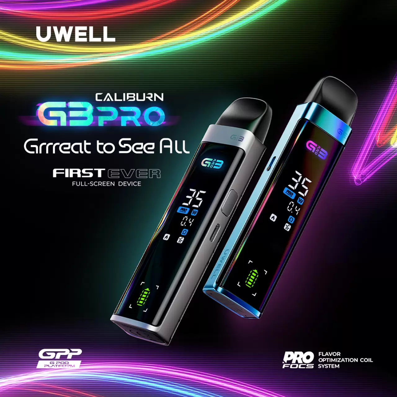 全螢幕 × 高功率 × 精準氣流,UWELL Caliburn G3 Pro 為追求口感與性能的你量身打造。